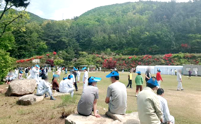 운동장 건너편 (새양산 병원정문) |
