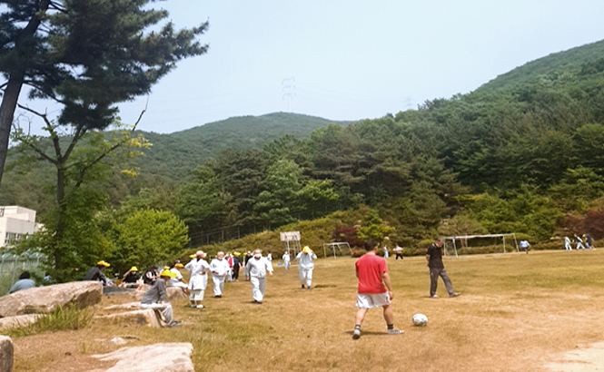 운동장 건너편 (새양산 병원정문) |