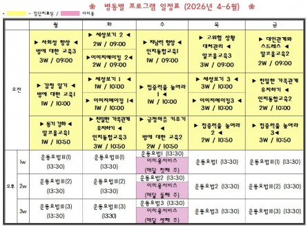 병동별 프로그램 일정표 (2026년 4~6월)