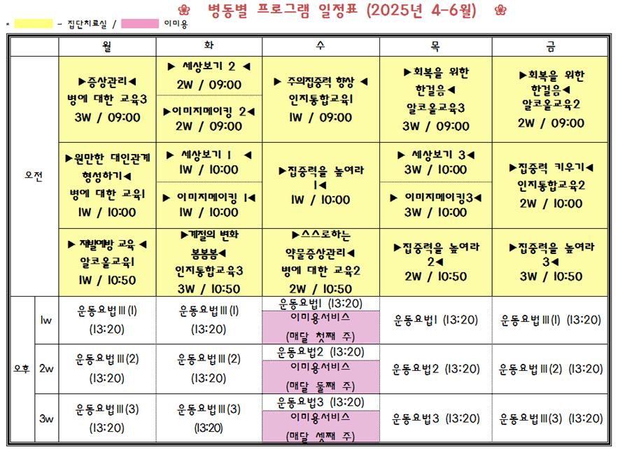 병동별 프로그램 일정표 (2025년 4~6월)