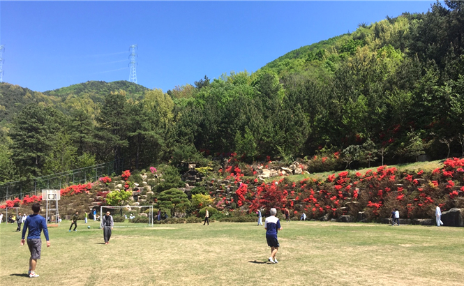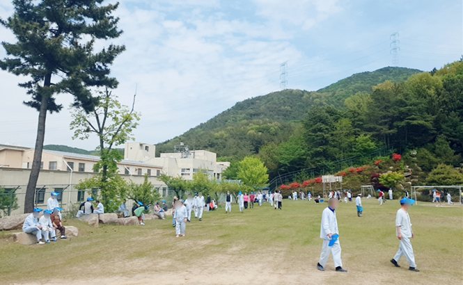 운동장 건너편 (새양산 병원정문) |