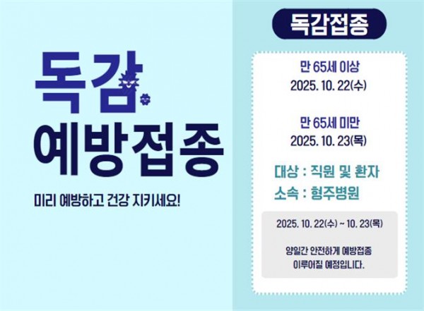 목록 『독감예방접종 일정 안내문』 페이지 정보 작성자관리자 댓글0건 조회222회 작성일25.10.22 16:16 본문 - 이전글『코로나19 예방접종 일정 안내문』 25.11.19 다음글양산시장 표창장 수여(정신응급 당직 수행 우수기관 선정) 25.10.16 댓글 0 댓글목록 등록된 댓글이 없습니다.